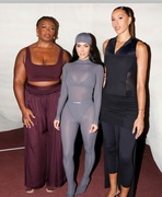 Kim and Khloé Kardashian with Charlotte Adams at a NikeSKIMS event in NYC. Sep 2025