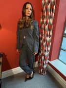 Standard INSTA Kaley Cuoco in gray suit jacket and skirt 01_29_2026